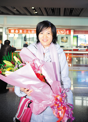 | 5日,在第十届直布罗陀国际象棋公开赛中,侯逸凡获得亚军,创造了本次比赛创办十年来女棋手的最佳战绩。图为侯逸凡抵京。 新华社发 |
