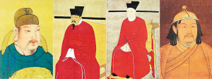 | 左起分别为唐、宋、南宋、元朝官员服饰 |