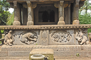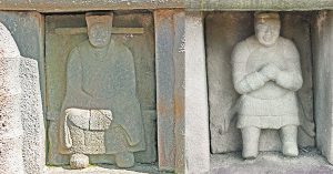 | 塔壁上雕的文官武将护法 |