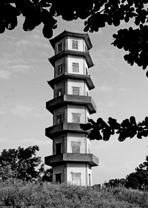 顺着千镜湖往上走,“琼北第一高塔”便毫无保留的展现在了眼前。这座“临高瞭望塔”又称“琼北一阁”,1991年由临高县林业局在高山岭的顶部建造,塔高6层,既可观景亦有防火预警功能。