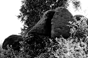 从塔上下来,顺着蜿蜒曲折的小径,进入林木荫翳的高山岭深处,几株大榕树遮天蔽日,顺着它们那蓬蓬勃勃的枝叶从下向上望去,最后淡淡融进蓝湛湛的天空。