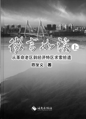 精神矍铄的陈全义先生又给我们带来惊喜,这就是陈先生新著的出版。80多万字,厚厚两大部,是陈全义先生从实践基础上得出的思索结晶。《微言如溪》的书名,看得出作者的谦逊,越是内心的充实,见多识广的人,往往越谦逊,但这谦逊的背后,却拥有强大雄厚的基础依托,从书的副题《从革命老区到经济特区求索拾遗》可见一斑。