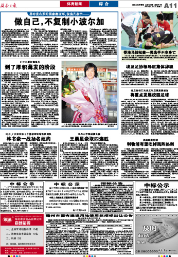 | 海南日报 体育新闻综合 011 2012-02-061 2012年02月06日 星期一 |