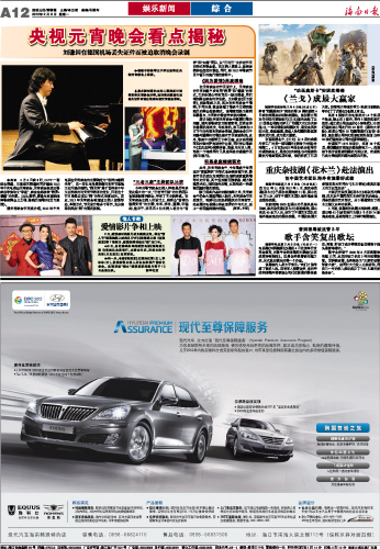 | 海南日报 娱乐新闻综合 012 2012-02-061 2012年02月06日 星期一 |