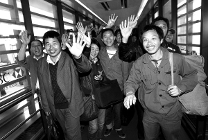 | 272名滞留利比亚的中国公民乘坐东航的撤侨包机抵达上海(2011年2月27日摄)。 新华社发 |