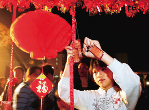在会文镇凤会村,人们举行传统的“送灯”活动。“灯主”领队,一个个村民举着印有“招财进宝”,“连生贵子”的“竹篾花灯”排成长龙,一边敲锣打鼓,一边燃放炮竹沿村游行。队伍行至离村不远的公庙,花灯便挂在庙的内外。灯一挂好,人们便蜂拥而上去抢花灯。