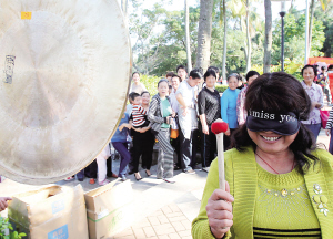 | 2月6日,海口人民公园举行游园活动,市民在参与“蒙眼敲锣”游戏。 本报记者 李英挺 摄
