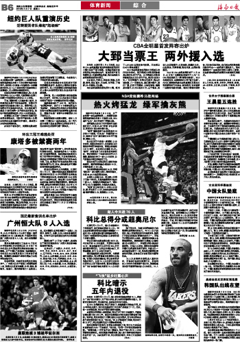 海南日报 体育新闻综合 014 2012-02-071 2012年02月07日 星期二