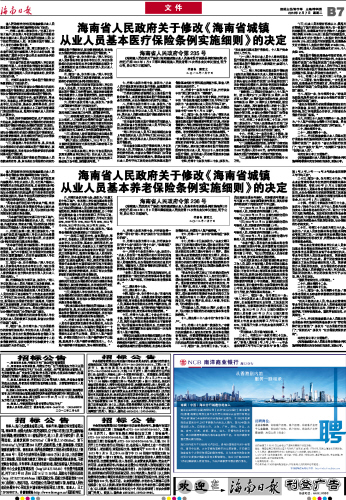 海南省人民政府关于修改《海南省城镇从业人员基本养老保险条例实施细则》的决定