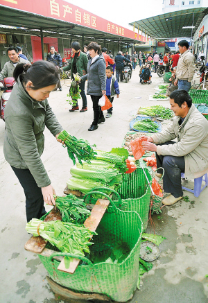 2月7日,在广西南宁市仙葫开发区盘古农贸市场农副产品自产自销区,市民在选购蔬菜。 广西南宁市物价部门近日下发通知,鼓励农贸市场直销,对进入农贸市场的自产自销农副产品免收市场设施租赁费,有条件的农贸市场要在一定时间、地点有序开放蔬菜早市,或者拿出一定比例的市场摊位免费提供给城郊农民、蔬菜种植户进场直销,以减少中间流通环节,促进农产品流通,降低蔬菜价格。 新华社发