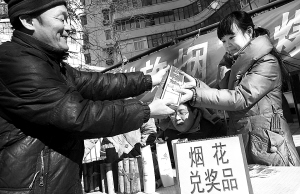 2月7日,北京市金融街街道的居民上交剩余的烟花爆竹。 2月7日至9日,北京市各街道办事处在五环路内的社区设立烟花爆竹回收点,就近接收市民上交的烟花爆竹,并根据上交烟花爆竹的数量和价格给予相应礼品。各区县将统一运至仓库分类储存。 新华社发