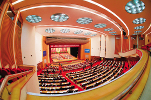 布置一新的省人大会堂内,洋溢着和谐奋进的气息。大会主席台上方,10面鲜艳的红旗簇拥着中国人民政治协商会议会徽,相互辉映,庄严喜庆。主席台前,群芳吐蕊,生机盎然。