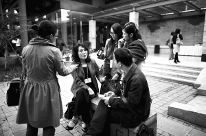 2月9日,为了及时报道“两会”内容,媒体记者们早早赶到现场,很晚才离开。 本报记者 张杰 摄