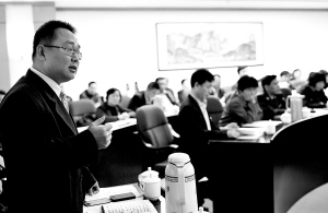 | 2012年2月10日,海口代表团代表林刚在发言。