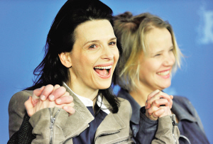 2月10日,在德国首都柏林,影片《她们(Elles)》的演员、法国影星朱丽叶·比诺什(左)与乔安娜·库利格出席第62届柏林电影节的影片推介活动。 波兰导演马尔戈斯卡·舒莫夫斯卡执导的影片《她们》将参加本届柏林电影节全景单元的角逐。 新华社记者 马宁 摄
