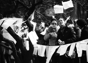 2月11日,不少家长前来为子女挑选“对象”。 2月11日是今年情人节前的周末假日,一场“以梅为媒”的万人相亲会在武汉市东湖梅园举行,大量单身男女前来寻觅意中人。 新华社记者 程敏 摄