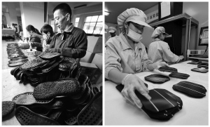 | 2月10日,浙江宝利特集团的鞋业车间和新能源车间的工人在紧张工作。 |