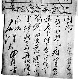 | 省档案馆藏1952年4月3日,毛主席给张云逸的信。
