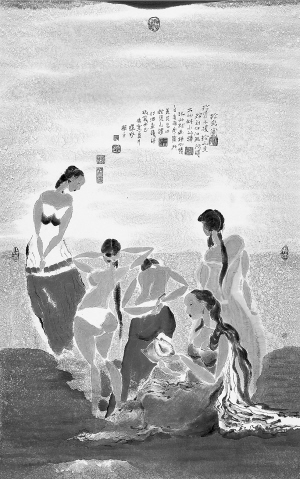 年近花甲的王隽珠因迷恋海南岛的阳光、空气,几年前在海南买屋,美其名曰:“拾贝小楼”。海南还激发起他重画人物的兴趣,多幅《拾贝图》以海滩泳装美女为题材,令人心荡神驰,不过或许由于所待时间较短,对海南山水所知较少的缘故,长于山水的他并未涉足海南山水画创作这一主题,但王隽珠对北方山水的创作经历或有助于帮助我们认识“南派山水”的实质。当年美术理论家郎绍君在看了王隽珠的山水画展览后如是写道:“当代的中国画比以往任何时候都更具有发展地域风格条件:传统模式的凝固性大大松动了;现代性平等地摆在各地区画家面前;一个多元的前景逐渐出现;个性的苏醒和观念的开放为挖掘与开拓地方特色提供了巨大的可能性……当然,沉睡的、不曾或较少开辟的地方特色要复活与升华,需要地域性的心理素质的凝聚,需要相应文化适应力的积累,有待于一代甚至几代人的奋斗。”