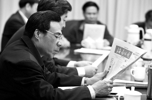 2月12日,参加省四届人大五次会议的代表分组审议各项报告。 ↑会议间隙,文昌代表团的代表们在互相交流。 ←会议间隙,五指山代表团的一位代表在阅读《海南日报》有关“两会”的报道。 本报记者 王凯 摄