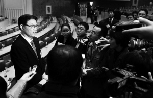 | 2月13日上午,新当选的海南省省长蒋定之在接受媒体采访。 本报记者 宋国强 摄 |