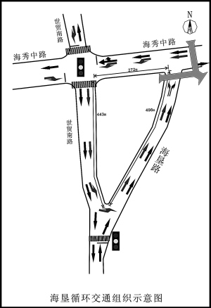本报海口2月16日讯 (记者文刚 特约记者陈世清 通讯员李盛兰)2.97公里6个红绿灯路口。这意味着不到500米就得停车等候,导致海秀中路常常拥堵。今天,海口警方向媒体通报了新的交通组织方案,并于2月25日起,在东北人路口、南庄路口、海垦天桥处实施3个单循环,届时有望缓解目前拥堵状况。