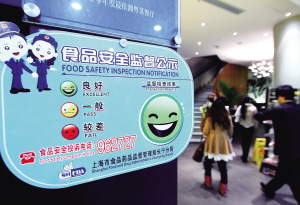 2月16日,上海市食品药品监督管理局开始在中心城区45000家社会饭店悬挂餐饮安全水平公示标识———“卫生脸谱”。标识上的“绿色笑脸”“黄色平脸”“红色哭脸”分别代表良好、一般和较差。消费者就餐前可以看“脸”选店。 新华社发