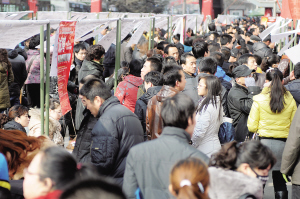 兰州春季公益性用工招聘会现场(2月16日摄)。 2月16日,兰州市七里河区举行“春风行动”暨春季公益性用工招聘会,为农民工、高校毕业生、下岗失业人员提供4000余个就业岗位。2012年初以来,兰州市已举办多场公益性就业招聘会,吸引了众多求职者前来应聘。 新华社发