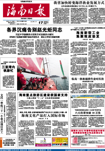 海南日报 首版 001 2012-02-171 2012年02月17日 星期五