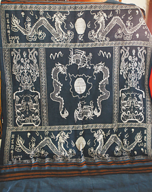 | 东方市东河镇西方村絣染的龙被。王建成摄 |
