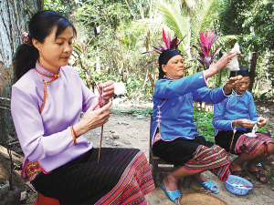 | 保亭加茂村的黎族妇女在纺线。 陈耿 摄 |