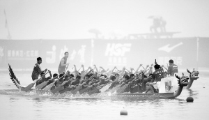 | 2月22日,中华龙舟大赛在万宁市和乐北港开赛。图为选手在比赛中。 本报记者 宋国强 摄 |