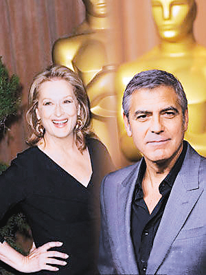 梅丽尔·斯特里普(左)和乔治·克鲁尼是章子怡最看好的影后和影帝
