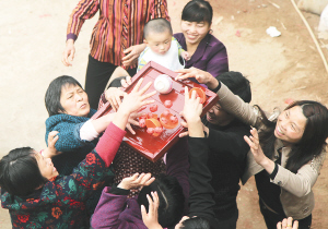 2月22日,福建省莆田市城厢区泗华村举行“抢豆腐丸”民俗活动。 每年农历“二月二”的前一天,福建省莆田市城厢区泗华村的村民们都要集中到一起用豆腐和菜制作豆腐丸子。豆腐丸子经过晾晒后,被装在一个个塑料碗里,由村里的青年男子用托盘端着,供村民争抢。村民们将抢到的豆腐丸子带回家,在“二月二”这天煮了一家人一起吃,共同祈盼新一年团圆平安、事业红火。 新华社发