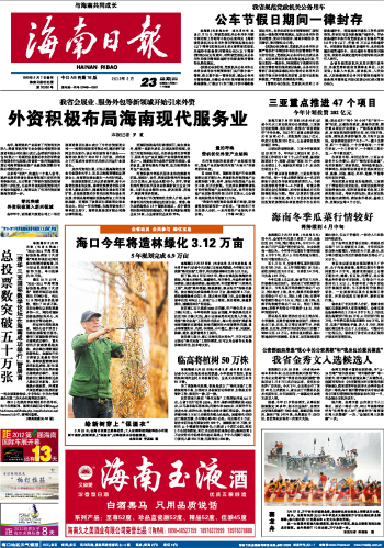海南日报 头版 001 2012-02-231 2012年02月23日 星期四