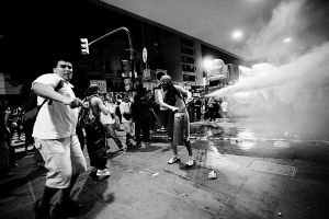 2月24日,在阿根廷首都布宜诺斯艾利斯的第11区城铁车站,示威者与警方发生冲突。 阿根廷布宜诺斯艾利斯22日发生城铁出轨事故,造成严重人员伤亡。部分民众对当局救援速度缓慢十分不满,在车站进行抗议活动,并和警方发生激烈冲突。阿根廷救援人员24日在城铁事故现场又发现了一名遇难者遗体,使本次事故死亡人数增加到51人。 新华社发