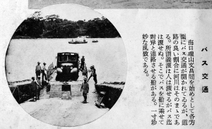 | 民国海南河岸有趣的风景———将班车装载到对岸的船 |