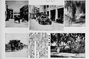 《佛印南支海南岛写真集》里也描述了海口市占尽与大路交通的便利以及南渡江的水利,从发展的势头来看全不见“旧时的疲态,呈现日益繁荣的状态。全岛交通网完备,市内交通也几乎与台北市一样。因没有铺设铁路的必要,反而促进了汽车业的发展。”