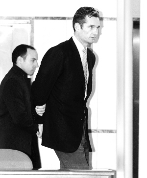 2月25日,西班牙国王的女婿伊纳基·乌丹加林(右)离开西班牙帕尔玛的法庭。 伊纳基·乌丹加林因涉嫌侵占公款,于当日出庭接受质询。乌丹加林现年44岁,曾是职业手球运动员,1997年与克里斯蒂娜公主结婚,获封号帕尔马公爵。 新华社/路透