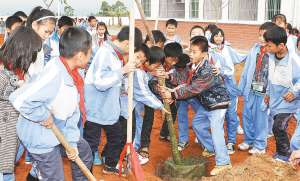 | 2月28日上午,“绿化校园,美化心灵”植树活动在东方市思源实验学校举行。
