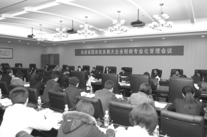 近日,省国税局召开大企业税收专业化管理会议。来自全省七个市、县,覆盖化工生产、制药汽车、通信、金融保险等十多个行业的30家大企业财务负责人参加会议。(陈荣琨摄)