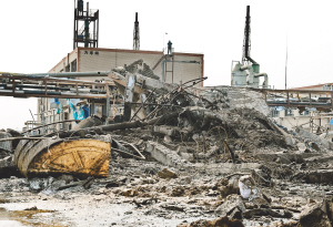 | 爆炸事故中损坏的厂房。 新华社发 |