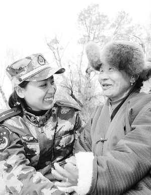 | 2012年2月29日,武警西藏总队第二支队的官兵和福利院的老阿妈谈心。 |