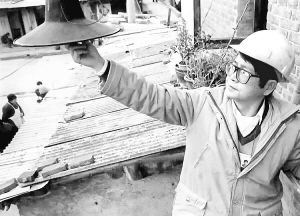 | 徐虎在为上海光明一村修理路灯(资料照片)。 |