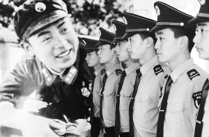 | 2009年7月29日,雷锋班的战士在“老班长”雷锋的肖像前列队点名。 |