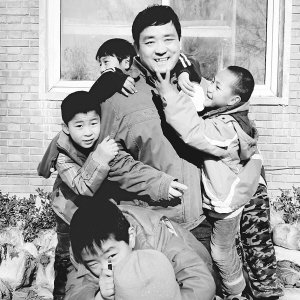 | 2011年12月8日,石清华与孩子们在一起。 |