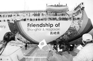 2月29日,民众在日本长崎港国际码头为“海洋玫瑰”号邮轮送行。 当日,连接日本长崎县和中国上海市的“长崎-上海”航路在停航多年后复航,“海洋玫瑰”号成为此次复航后的首艘客运邮轮。长崎-上海海上航线2月29日起暂定为每周一次往返。 新华社发