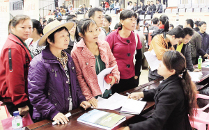 | 2月29日,图为屯昌本地富余劳动力积极参加招聘会的情景。 本报记者 洪宝光 摄