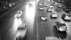 | 二月二十九日傍晚交通高峰期的海秀中路,实施循环路线后车辆通行顺畅。