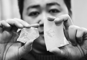 2月29日,黄迪颖研究员展示其发现的中生代“巨型跳蚤”化石中跳蚤体型最大的两块化石(均为中侏罗世道虎沟巨型跳蚤化石)。